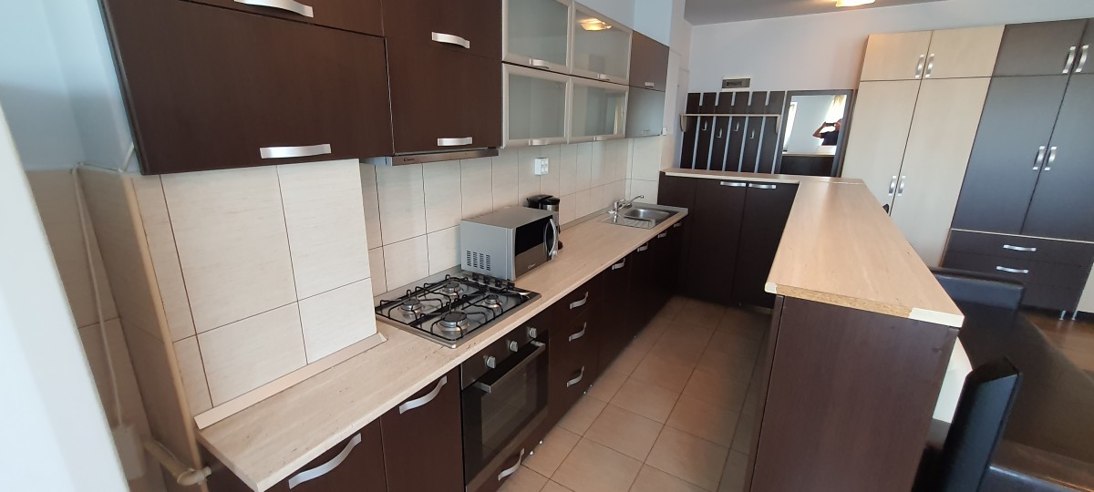 Appartement à louer à Cluj, près de l’Université de Médecine et de Pharmacie, rue Observatorului 136-138, avec salon, 1 chambre, salle de bains, 60 m², balcon. Equipements : chauffage central, comptoirs, lave-linge, réfrigérateur, TV, four, cuisinière, micro-ondes. Internet et câble TV installés.