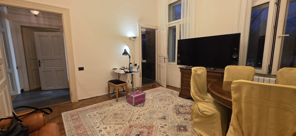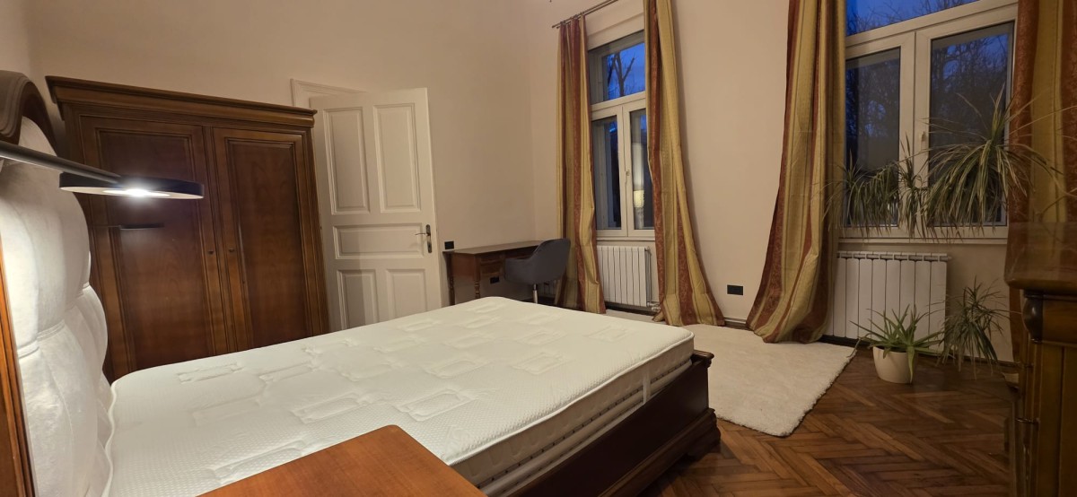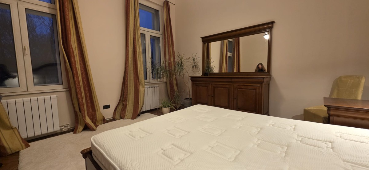 The Uniassist real estate agency rents an apartment in the central area of Cluj, Piata Muzeului, in a historic building with yard, consisting of a bedroom, living room with open space kitchen, a generous bathroom with shower, and an extra-room as a dressing. The surface of the apartment is 70 square meters. Although it is located in an active area of the center, the apartment is quiet, being protected from the noise of the terraces, restaurants and clubs in the area. The apartment for rent is equipped with a TV, washing machine, electric oven, refrigerator, stove, etc., the apartment has many storage spaces.