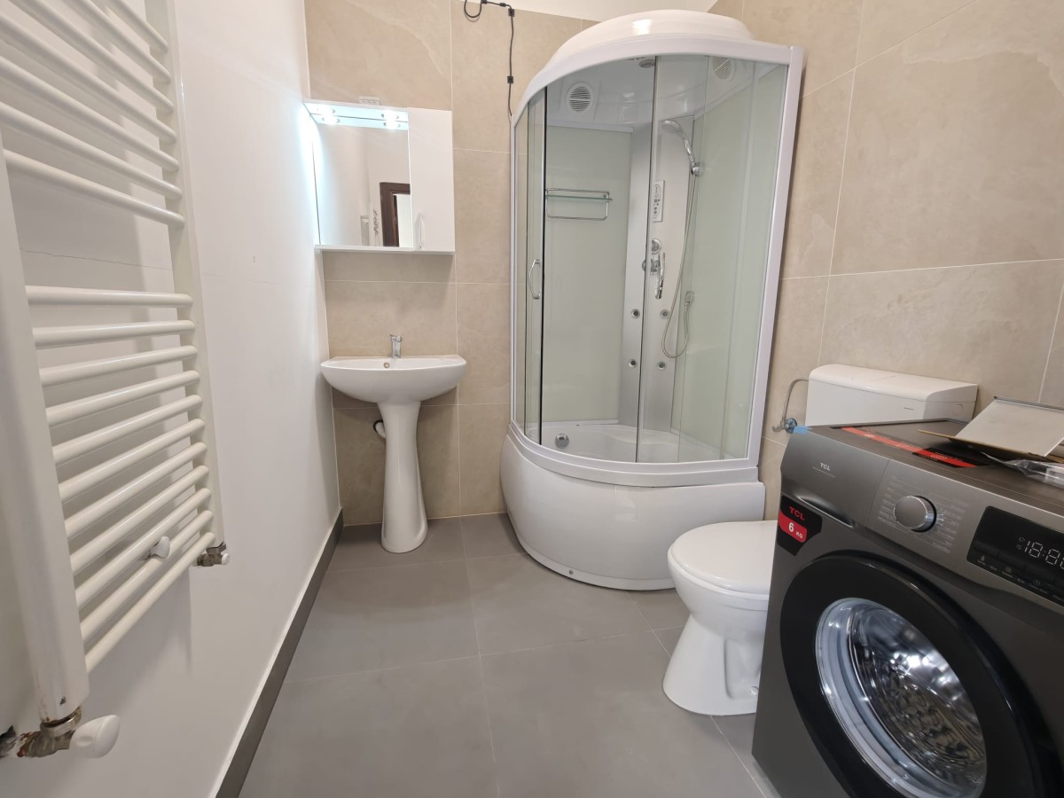 Uniassist Real Estate Agency offers for rent an apartment located in the center of Cluj-Napoca, approximately a 10-minute walk from the University of Medicine and Pharmacy and a 10-minute walk from the University of Agricultural Sciences and Veterinary Medicine. This studio apartment includes a kitchenette, a sleeping area, and a bathroom with a shower. The apartment is fully equipped with a washing machine, induction cooktop, fridge, central heating and new furniture. It is available now.